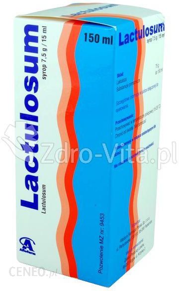 Nazwa: Lactulosum AflofarmPostać: syropDawka: 7,5 g/15mlOpakowanie: 150 mlSkład:15 ml syropu zawiera 7,5g laktulozyciekłej (Lactulosum liquidum). Pełny wykaz substancji pomocniczych, patrz punkt 6.1.Działanie:Lactulosum Aflofarm zawiera syntetyczny disacharyd (laktuloza), nie wchłaniający się z przewodu pokarmowego. Po podaniu doustnym jest rozkładany do kwasu mlekowego i niewielkich ilości kwasu mrówkowego i octowego przez florę bakteryjną w jelicie grubym. Wskutek tego dochodzi do zwiększenia ciśnienia osmotycznego, zatrzymania wody i w rezultacie do rozluźnienia treści jelita grubego i pobudzenia perystaltyki. Zakwaszenie zawartości jelita grubego hamuje wzrost bakterii rozkładających białka i powoduje przekształcenie amoniaku w jon amonowy, który nie wchłania się z jelita do krwiobiegu i jest wydalany z kałem. Preparat w niewielkim stopniu wchłania się z przewodu pokarmowego. Około 3% dawki preparatu jest wydalane z moczem w postaci nie zmienionej w ciągu 24 h. Działanie przeczyszczające występuje zazwyczaj po 1-2 dniach od przyjęcia pełnej dawki.Wskazania:- przewlekłe zaparcia- encefalopatia wątrobowaPrzeciwwskazania:- Nadwrażliwość na substancję czynną lub na którąkolwiek substancję pomocniczą wymienioną w punkcie 6.1; – niedrożność jelit; – galaktozemia.Działania niepożądane:Działania niepożądane uszeregowano zgodnie z częstością występowania określoną następująco Bardzo często (≥1/10), często (≥1/100 do < 1/10), niezbyt często (≥ 1/1 000 do < 1/100), rzadko (≥ 1/10 000 do < 1/1 000), bardzo rzadko (< 1/10 000).Zaburzenia żołądka i jelitCzęsto: wzdęcia z oddawaniem wiatrów, skurcze jelit, odbijanie, dyskomfort w jamie brzusznej.nudności i wymioty.Zaburzenia metabolizmu i odżywianiaRzadko: zaburzenia równowagi elektrolitowej w wyniku biegunki (duże dawki laktulozy wywołują biegunkę prowadzącą do utraty płynów, hypernatremii, hypokaliemii, a w skrajnych przypadkach do zaburzeń gospodarki kwasowo – zasadowej).Zgłaszanie podejrzewanych działań niepożądanychPo dopuszczeniu produktu leczniczego do obrotu istotne jest zgłaszanie podejrzewanych działań niepożądanych. Umożliwia to nieprzerwane monitorowanie stosunku korzyści do ryzyka stosowania produktu leczniczego. Osoby należące do fachowego personelu medycznego powinny zgłaszać wszelkie podejrzewane działania niepożądane za pośrednictwem:Departament Monitorowania Niepożądanych Działań Produktów Leczniczych Urzędu RejestracjiProduktów Leczniczych, Wyrobów Medycznych i Produktów BiobójczychUl. Ząbkowska 41PL-03 736 WarszawaTel.: + 48 22 49 21 301 Faks: + 48 22 49 21 309 e-mail: adr@urpl.gov.plInterakcje:Laktuloza obniża pH w jelicie grubym, może osłabiać działanie leków, których uwalnianie zależy od pH w okrężnicy.Laktuloza wykazuje synergistyczne działanie z neomycyną podczas leczenia encefalopatii wątrobowej.Długotrwałe podawanie laktulozy w dużych dawkach może powodować zmniejszenie stężenia poziomu potasu w surowicy co może nasilać działanie glikozydów nasercowych.Dawkowanie:Podanie doustne. Do opakowania dołączona jest miarka ułatwiająca dawkowanie.ZaparciaDorośli: zwykle stosowaną początkową dawką dobową (pierwsze trzy dni) jest 45 ml syropu podawane jednorazowo przed śniadaniem lub 15 ml 3 razy na dobę przed posiłkami. Po uzyskaniu efektu należy stosować dawkę podtrzymującą 15 ml syropu na czczo.Dzieci powyżej 3 roku życia: początkowo 5 do 15 ml syropu na dobę, dawkę można stopniowo zwiększać co 3 dni do uzyskania właściwego efektu działania.Dzieci do 3 roku życia: początkowo 5 ml syropu na dobę, dawkę można stopniowo zwiększać co 3 dni do uzyskania prawidłowych wypróżnień.Niemowlęta: początkowo 2,5 ml syropu na dobę, dawkę można stopniowo zwiększać co 3 dni do uzyskania prawidłowych wypróżnień. Jeżeli wystąpią wzdęcia brzucha, należy zmniejszyć dawkę do tolerowanej przez dziecko.Encefalopatia wątrobowaDorośli: 120 ml do 180 ml syropu na dobę w 3 do 4 dawkach podzielonych.Duże dawki produktu leczniczego stosowane w encefalopatii wątrobowej mogą wywoływać biegunkę.Dawkę należy dostosować tak, aby liczba luźnych stolców nie przekraczała 2 do 3 w ciągu dnia. Produkt leczniczy przed podaniem może być mieszany z wodą, sokami owocowymi lub mlekiem.Laktuloza wchłania się z przewodu pokarmowego w 0,2 %, dlatego nie ma konieczności zmiany dawkowania u pacjentów z niewydolnością nerek.Środki ostrożności:Okresowo należy kontrolować poziom elektrolitów w osoczu (potas, chlorki) podczas długotrwałego stosowania (powyżej 6 miesięcy). Dotyczy to szczególnie pacjentów w podeszłym wieku.Produkt powinien być stosowany z ostrożnością u diabetyków gdyż zawiera niewielkie ilości laktozy i galaktozy.Specjalne ostrzeżenia dotyczące substancji pomocniczychProdukt leczniczy zawiera laktozę. Lek nie powinien być stosowany u pacjentów z rzadko występującą dziedziczną nietolerancją galaktozy, niedoborem laktazy (typu Lapp) lub zespołem złego wchłaniania glukozy-galaktozy.Prowadzenie pojazdów:Produkt leczniczy nie ma wpływu na zdolność prowadzenia pojazdów i obsługiwania maszyn.Przedawkowanie:Nie odnotowano przypadków przedawkowania laktulozy. W przypadku przedawkowania może wystąpić biegunka i skurcze w jamie brzusznej. W takich przypadkach wystarczy na ogół zmniejszenie dawki lub przerwanie leczenia, a w razie konieczności zastosowanie leczenia objawowego.Ciąża:CiążaProdukt leczniczy może być stosowany w ciąży jedynie w przypadku zdecydowanej konieczności.Karmienie piersiąBrak dostatecznych danych na temat przenikania laktulozy do mleka, dlatego nie należy podawać jej kobietom karmiącym. Jednak ze względu na bardzo niewielkie wchłanianie laktulozy z przewodu pokarmowego potencjalne zagrożenie dla noworodka jest znikome.