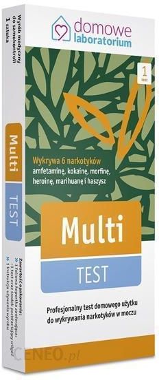 Multi TESTTest narkotykowy wykrywający 6 rodzajów narkotyków jednocześnie- w opakowaniu 1 testMulti TEST to prosty w wykonaniu, wieloparametrowy test do samodzielnego wykonania w warunkach domowych.Pozwala on na wykrycie najczęściej używanych substancji psychoaktywnych: morfiny, heroiny, kokainy, amfetaminy, marihuany i haszyszu.- Aby przeprowadzić test, należy uzyskać próbkę moczu zebranego do czystego i suchego pojemnika. Wynik można uzyskać w ciągu 5 minut od momentu zanurzenia pasków testowych w moczu.Jeśli wynik któregokolwiek testu jest dodatni, należy obserwować badaną osobę, czy zdradza typowe objawy dla zażycia danego narkotyku. W przypadku powtarzających się objawów, należy zgłosić się do odpowiedniej jednostki po fachową pomoc. Należy pamiętać, że otrzymanie ujemnego wyniku nie oznacza jednak w 100%, że badana osoba nie zażywała narkotyków.